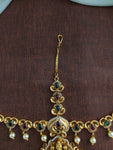 Indulge in the divine beauty and auspicious symbolism. Order your Lakshmi Ji Kemp Stone Antique Tikka Set today!