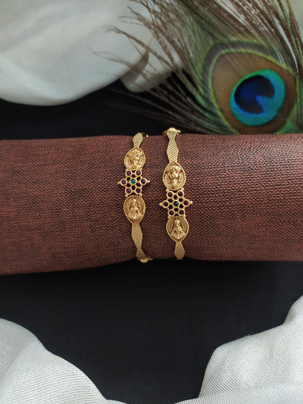 - Lakshmi's Grace: The centerpiece of these bangles is a beautiful depiction of Goddess Lakshmi, symbolizing auspiciousness, wealth, and good fortune.