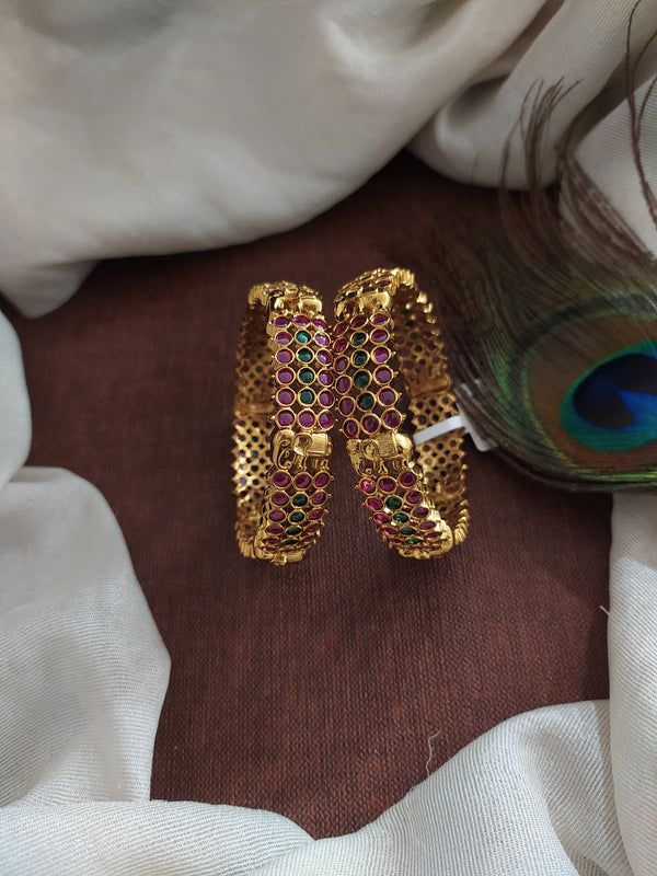 Embrace the timeless elegance and cultural heritage with the Elephant Design Kemp Stone Antique Bangles. Add a touch of captivating beauty and majestic symbolism to your wrists today!