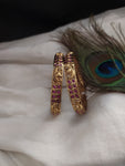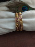Description: "Elevate your style with our enchanting Antique Peacock Ruby Kemp Bangles, a fusion of traditional elegance and charm. These bangles are meticulously adorned with vibrant ruby Kemp stones, intricately crafted to reflect the allure of peacock motifs. Perfect for adding a touch of sophistication to your attire for special occasions and daily grace."