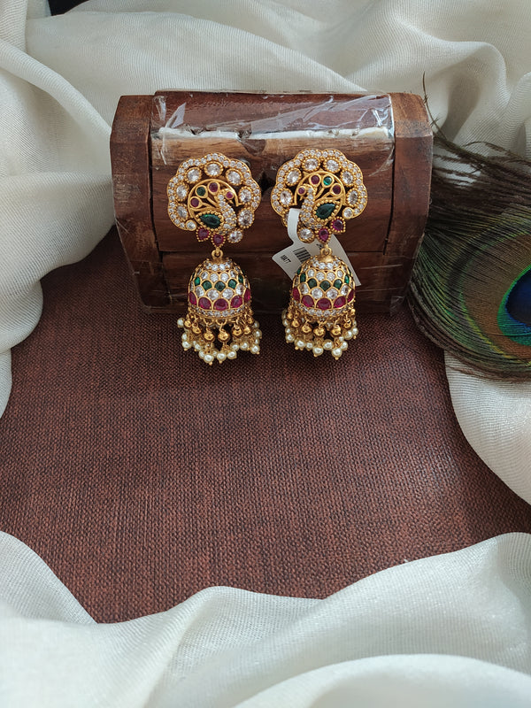 Embrace regal elegance with these peacock-inspired jhumki earrings. Ideal for traditional events, weddings, or special occasions where you want to make a statement with your jewelry.