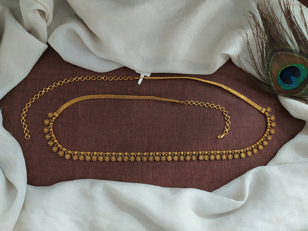 Add a regal touch to your traditional outfits with this beautifully crafted Antique Hip Chain. Designed with intricate detailing, this hip chain exudes a vintage charm, making it a perfect accessory for ethnic and festive ensembles. The classic antique finish adds to its elegance, while its versatile design complements various looks effortlessly.