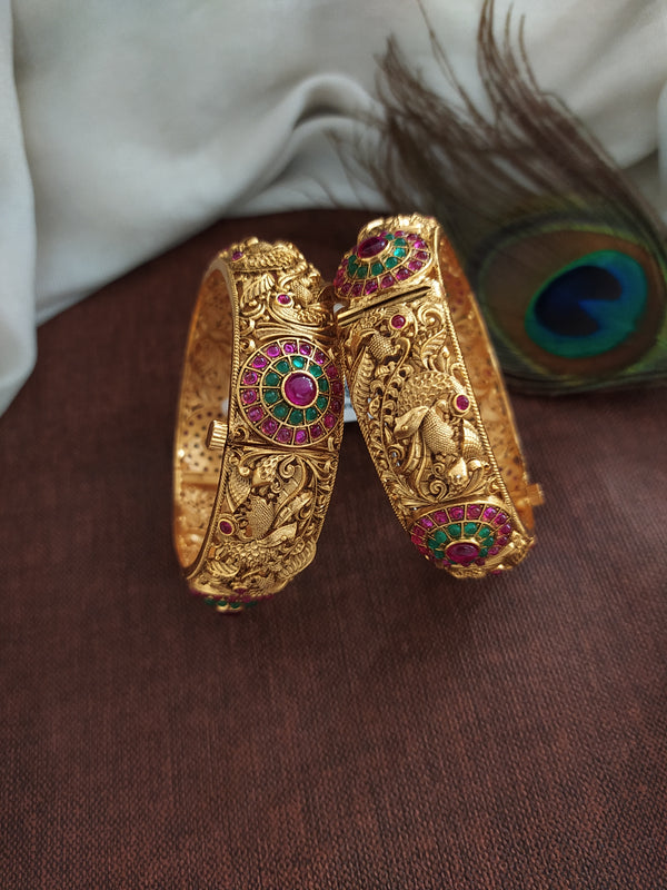 Indulge in the timeless beauty of Sonal Fashion's Traditional Design Antique Kada. Choose your size and experience the elegance of this unique piece. Order yours today!