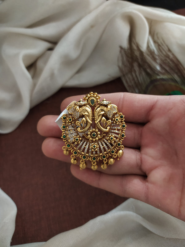 Adorn your hair with the timeless charm of this Traditional Hair Billa, designed in an exquisite antique finish. This elegant accessory showcases intricate detailing and traditional artistry, making it a perfect addition to your ethnic look. Its lightweight design ensures comfort while enhancing your hairstyle with grace and sophistication.