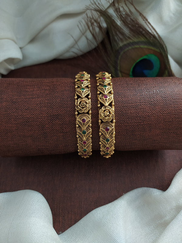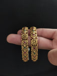 Classic antique-finish bangles designed to complement your glass or colored bangles. These versatile pieces can be used as border bangles or center highlights to create your own custom bangle set. Perfect for mixing and matching to suit traditional, festive, or casual looks. Available in sizes 2.2, 2.4, 2.6, 2.8, and 2.10.