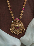 This stunning Antique Lakshmi Pendant Mala Set is designed with half-circle golden balls beautifully crafted Lakshmi pendant seated on a lotus, symbolizing grace and prosperity. The pendant is further adorned...