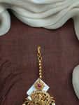 Add a touch of elegance to your traditional ensemble with this Antique Peacock Design Tikka. Crafted with an intricate peacock motif, this tikka is adorned with a stunning combination of white, and red stones. With an emphasis on the brilliant white stones, it radiates a classic charm, while the subtle pops of red and green add a vibrant contrast. Perfect for weddings, festivals, or any special occasion, this tikka is sure to elevate your ethnic look.
