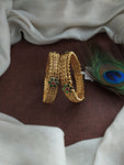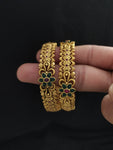Elevate your traditional jewelry collection with our Antique Floral Design Bangles, intricately crafted with floral patterns and adorned with green and kemp stones. Designed to exude elegance and heritage, these bangles are a perfect blend of vintage charm and timeless beauty.