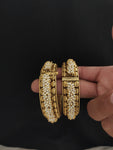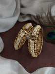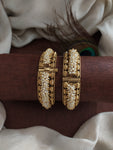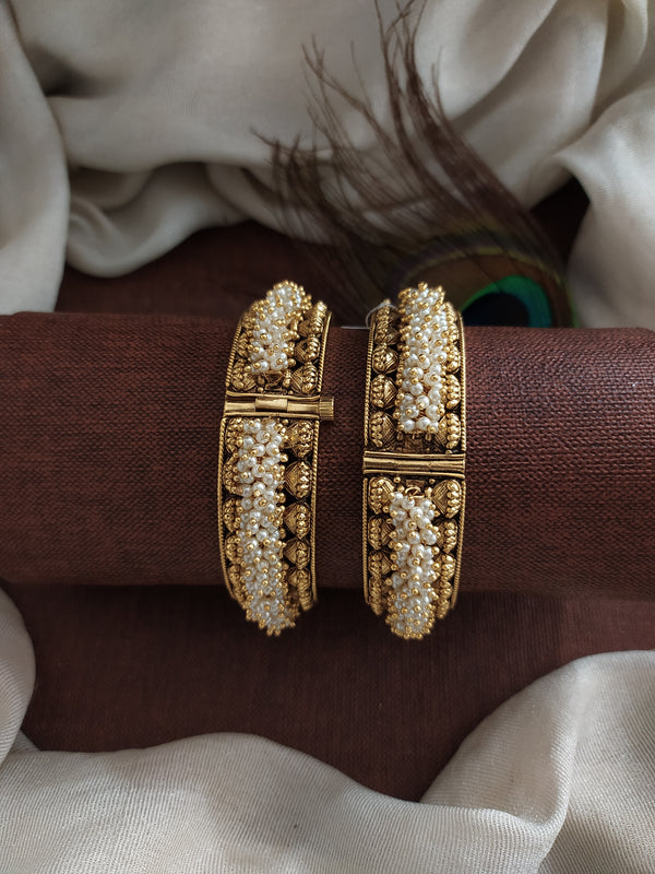 Elegantly crafted antique screw-type Kada bangle featuring a stunning bunch of pearls at the center. Openable design ensures comfort and easy fit for wrist sizes 2.4 and 2.6. A versatile piece to elevate your traditional or festive ensemble. Note: Price is for a single piece.