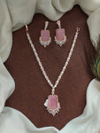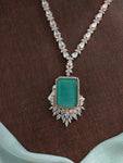 Embrace timeless sophistication with the captivating Big Center Stone Rose Gold Plated Zircon Necklace Set, a treasure from our coveted Rose-Gold Plated Diamond Collection. This exquisite set features a stunning central stone, available in your choice of mint or baby pink, surrounded by sparkling zircons, all meticulously set in a luxurious rose-gold plating.