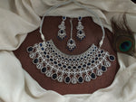 A stunning bridal zircon choker-necklace set crafted with high-quality AD stones, designed to bring a diamond-like brilliance. Perfect for weddings, receptions, or party occasions. Available in multiple vibrant colors –...