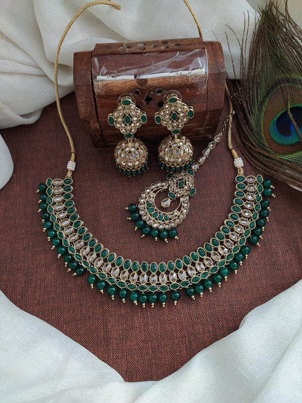 Elevate your style with the captivating Mehandi Necklace Set, showcasing a stylish design adorned with elegant danglings.