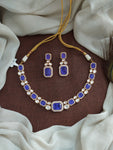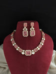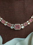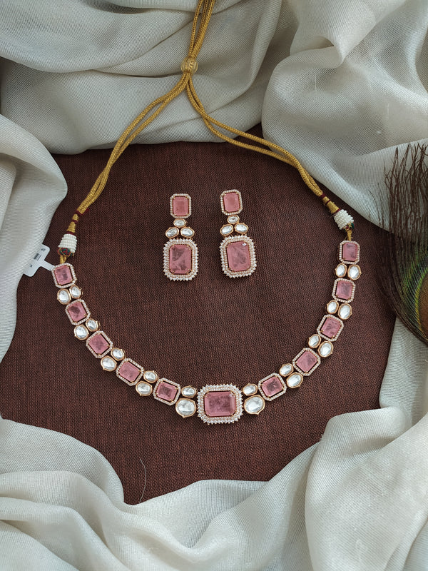 Introducing our Gold Plated Moissanite Necklace Set, a luxurious piece that combines elegance with craftsmanship. This set is meticulously crafted with doublet stones, Kundan, and zircon stones, ensuring a radiant and eye-catching appearance. It is available in two sophisticated colors: Pink and Violet, each designed to enhance your style.