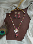 This stunning necklace is paired with matching earrings, ensuring a coordinated look for weddings, festivals, or any grand occasion. Its versatile color combination makes it perfect to complement various traditional outfits, adding both elegance and vibrancy to your attire.