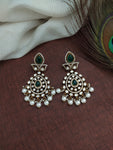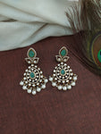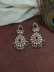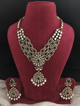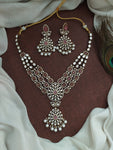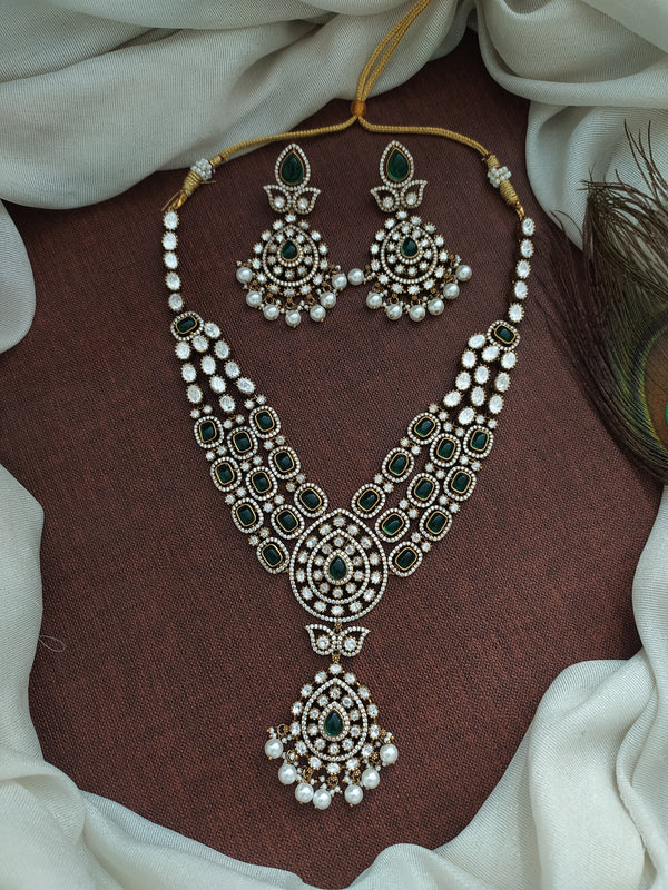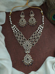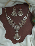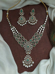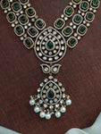 Indulge in vintage elegance with our Victorian necklace set. Its tilak-shaped centerpiece, adorned with delicate dangling accents, radiates timeless charm.