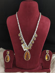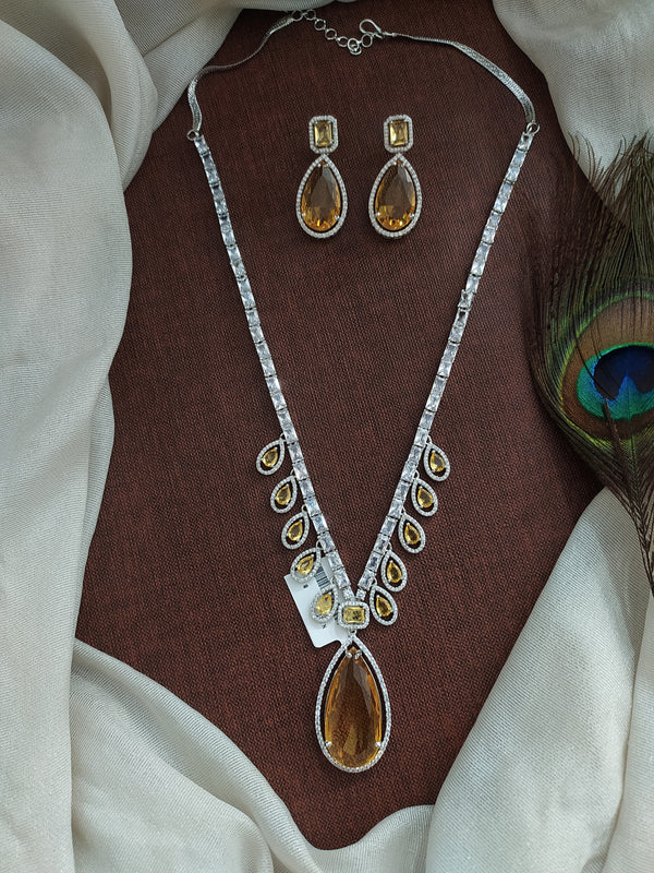 This exquisite Designer Zircon Necklace Set is crafted with precision, combining the brilliance of American Diamond (AD) and Zircon stones for a strikingly luxurious look. Available in three trending colors — Yellow, Blue, and Green, this set is designed to enhance any outfit with its sparkling elegance. Each necklace is accompanied by matching earrings, making it the perfect addition to your jewelry collection for special occasions or festive celebrations.