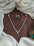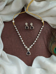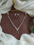 A chic and versatile zircon necklace set in rhodium silver finish, crafted with CZ stones for a sleek diamond-like shine. Perfect for parties, festive wear, or adding elegance to any...