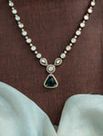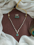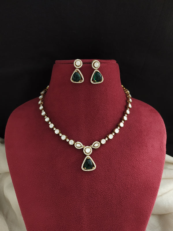 An exquisite zircon layered necklace set crafted with emerald and white premium CZ stones, giving a luxurious diamond-like shine. Ideal for weddings, festive occasions, and traditional attire. Comes with matching...
