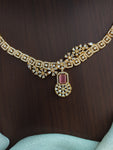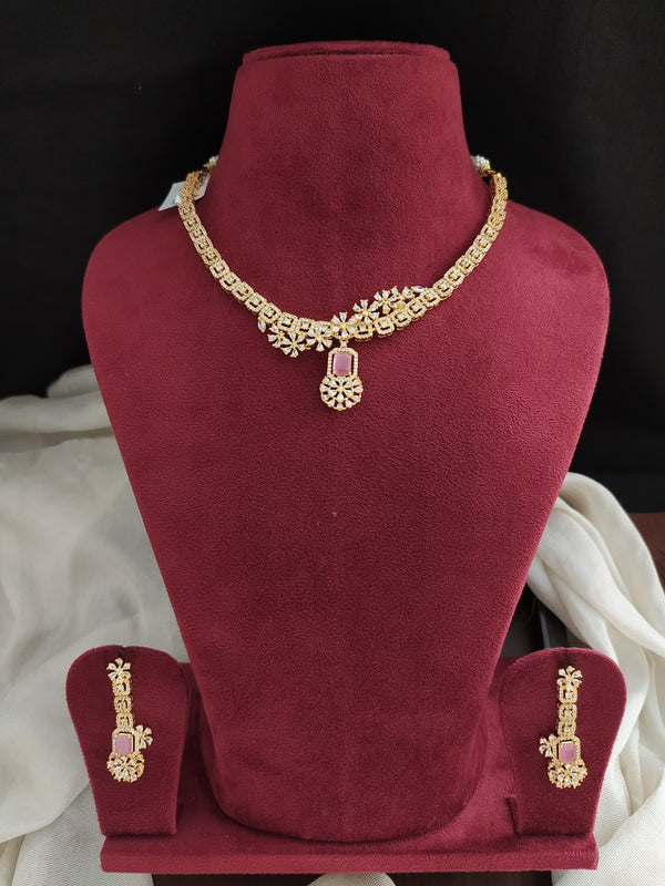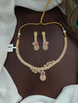 Presenting our stunning necklace set, adorned with gold-plated AD and zircon stones in a captivating baby pink hue.