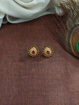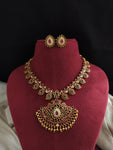 A timeless South Indian bridal classic, this mango kemp necklace set features vibrant red and green stones in a traditional design. Perfect for weddings, temple jewelry looks, and festive occasions....