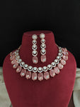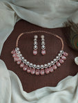 Discover the dazzling allure of our Zircon Necklace Set, crafted with exquisite zircon and AD stones. This set features a stunning rose gold plating and comes with matching dangling earrings. Available in two elegant colors, baby pink and blue, this necklace set is perfect for adding a touch of sophistication and glamour to any ensemble. Elegant and sophisticated, this necklace set shines with exquisite zircon and AD stones, all complemented by a stunning rose gold plating. With matching dangling earrings and available in two beautiful colors, this set adds a touch of glamour to any outfit. Perfect for those looking to elevate their style with high-quality materials and beautiful design.