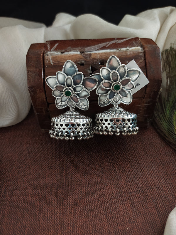 A statement fusion of tradition and modern elegance, these 92.5 Pure Silver Oversized Designer Star Studs with Jhumki are a must-have for jewelry lovers. Featuring a striking star-shaped stud with intricate detailing, these earrings are adorned with a bold center stone in green or ruby, complemented by a beautifully crafted dangling jhumki. Perfect for weddings, festive occasions, and grand celebrations, these earrings add a regal touch to any attire.