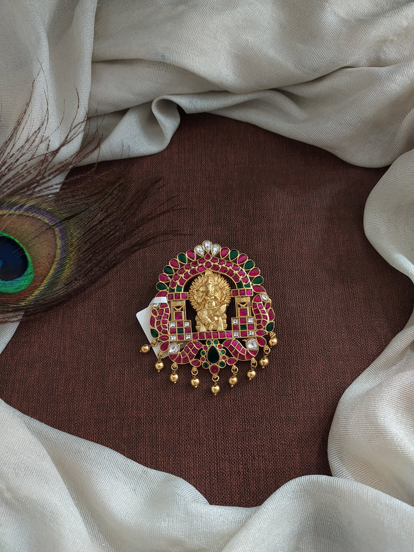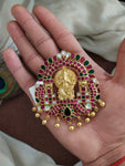 Crafted in 92.5 pure silver, this exquisite Jadau Kundan temple jewelry pendant features a detailed Lord Ganesha motif at the center. Designed with a back hook for easy pairing, it can be worn with your existing gold chains or customized with matching chains or beads. DM us on WhatsApp at +91 96772 59007 for customization options.