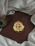 Crafted in 92.5 pure silver, this exquisite Jadau Kundan temple jewelry pendant features a detailed Lord Ganesha motif at the center. Designed with a back hook for easy pairing, it...