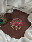 Handcrafted in 92.5 pure silver, this traditional pendant is adorned with Jadau Kundan stones and features a religious-inspired design. Ideal for pairing with gold chains or customizing with beads or...