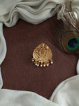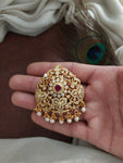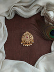 This exquisite Gold-Plated Pure Silver Pendant is designed with premium 92.5 hallmarked silver and adorned with pearl drops and a captivating combination of white and red semi-precious stones. The blend of shimmering stones and delicate pearls adds an elegant touch to this beautifully crafted pendant, making it a perfect accessory for special occasions and festive celebrations.