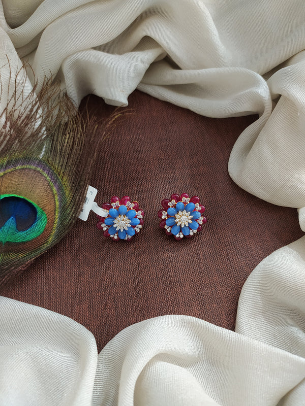 Crafted in 92.5 sterling silver, these elegant stud earrings feature dazzling zircon stones with intricate micro CZ detailing for a refined sparkle. The addition of delicate beads enhances the charm, making them a perfect accessory for both traditional and contemporary looks. Designed with a screw-type closure for a secure and comfortable fit.