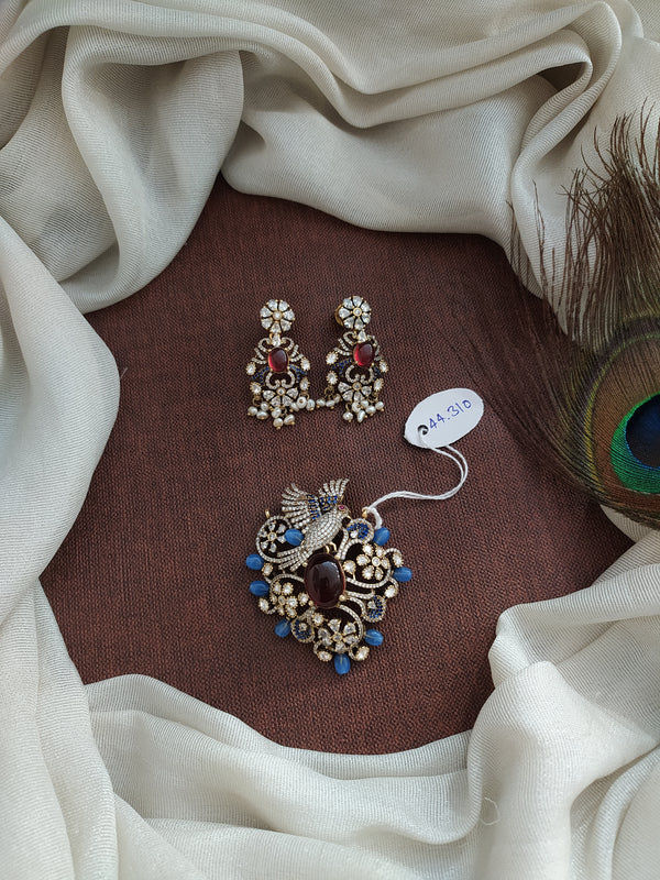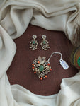 Indulge in timeless elegance with ourΒ 92.5 Pure Silver Moissanite Pendant Set, intricately designed with a peacock motif and adorned with semi-precious beads and high-quality Moissanite stones. A perfect blend of traditional artistry and modern craftsmanship, this set is a must-have for jewelry lovers.