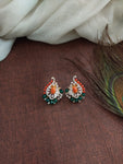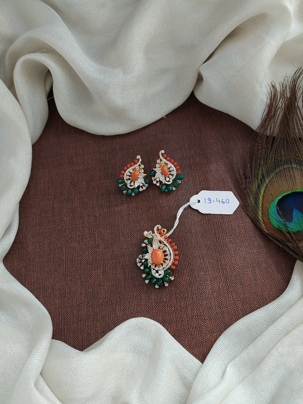 Green & Coral Color Combination Peacock-Designed Pendant Set with 92.5 Hallmarked Silver
