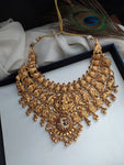 Embrace the rich heritage and timeless beauty of our Pure 92.5 Silver Antique Necklace Set. This exquisite necklace features intricate peacock and Lakshmi motifs, adorned with kemp, white, and green stones. The detailed craftsmanship and elegant design make it a perfect piece for special occasions and traditional events. Please note, this set does not come with earrings.
