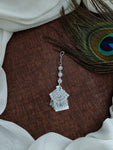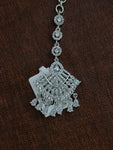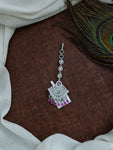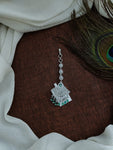 This mang tikka features beautiful ad and zircon stones, creating a stunning and eye-catching accessory. The tikka is crafted with intricate metalwork and attention to detail, showcasing the beauty of Indian jewelry.
