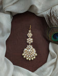 Its classic white color ensures versatility, allowing it to complement a wide range of outfits, from bridal lehengas to festive sarees. This tikka embodies grace and sophistication, offering a timeless look that enhances the beauty of any occasion.