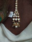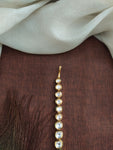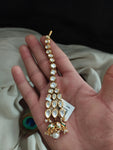 Enhance your traditional look with this exquisite Kundan Tikka, a perfect blend of elegance and craftsmanship. Designed with premium Kundan stones, this piece adds a regal touch to any outfit. The intricate detailing and delicate pearl drops make it ideal for weddings, festivals, and bridal ensembles. Whether paired with a matching set or worn as a statement piece, this classic maang tikka is a must-have for your jewelry collection.