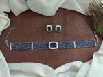 Central Statement: The set boasts a captivating centerpiece that takes center stage. This design element, reminiscent of Victorian jewelry, draws the eye and adds a touch of grandeur to your look.