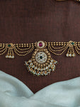 A royal Rajwadi-style plain gold finish side kandora, designed with elegant layered detailing for a graceful waist look. This beautiful hip chain adds a traditional touch to your festive or...