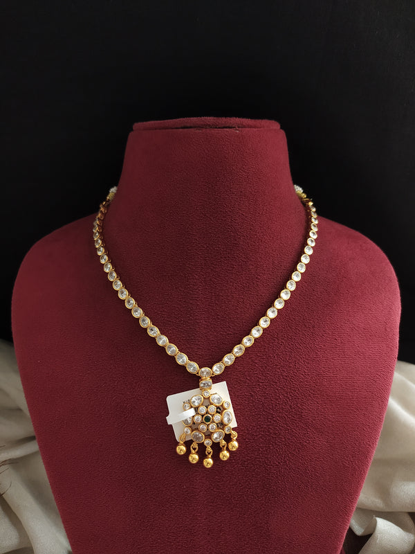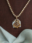 A stunning 92.5 pure silver traditional Attigai necklace, crafted with dazzling white CZ stones to replicate the exact look of real gold jewelry. Designed in a timeless South Indian style,...