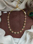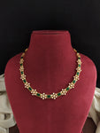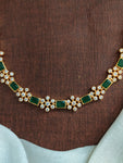 Crafted from 92.5 pure silver with a 24kt gold polish, this minimalist single-line short necklace features vibrant green stones. A subtle yet elegant piece, perfect for layering or wearing solo...
