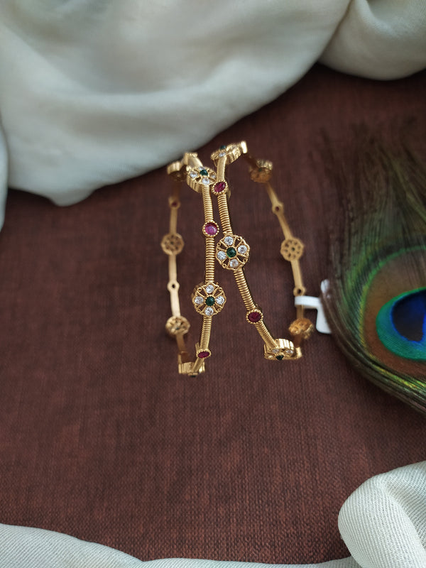Embrace the timeless elegance and cultural heritage of the Antique Gold-Plated Floral Bangles. Add a touch of captivating charm to your collection today!