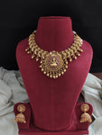 Discover the elegance of our Antique Lakshmi Necklace Set crafted with kemp and green stones. Available in two stunning color combinations: red and green, and full red, this set is completed...