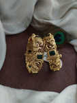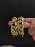 Antique peacock design Nakshi work kada bangle, intricately handcrafted with rich detailing and traditional craftsmanship. Designed in antique gold finish, this single-piece kada bangle features stunning Nakshi peacock motifs that...