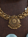 Are you looking for antique jewelry but want it without idols? Here is our Antique Necklace Set with peacock motifs and kemp and green stones. This set is available in two...