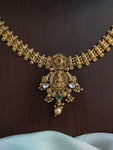Immerse yourself in the timeless elegance of our Antique Plain Gold Lakshmi Necklace Set. This set, featuring the revered Goddess Lakshmi in the center, embodies the rich cultural heritage and classic...