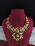Discover the timeless elegance of our Antique Polish Silver Necklace with Golden Danglings and Ruby stone.