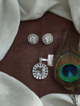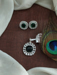 An elegant zircon pendant set designed with a striking center big AD stone that gives a rich diamond-like brilliance. This set is available in Diamond Finish (Two-Tone Gold with Silver)...