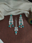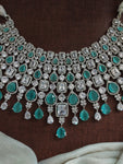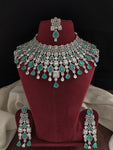 A graceful bridal zircon choker necklace set, beautifully crafted with sparkling AD stones for a dazzling diamond look. Perfect for weddings, receptions, or party occasions. Available in two elegant pastel...