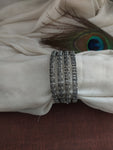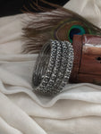 Description: "Discover versatile chic with our collection of German Silver Oxidised Plain Bangles. These bangles are meticulously crafted to perfection and are available in three versatile sizes - 2.4, 2.6,...